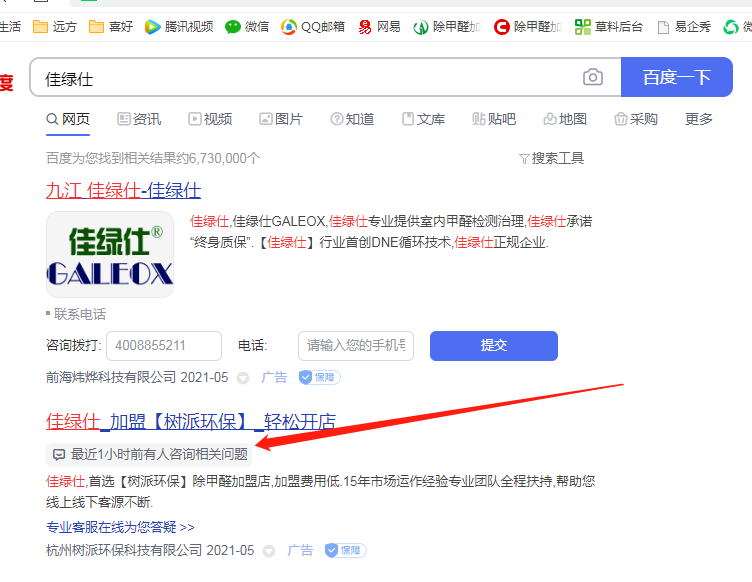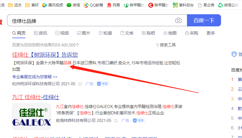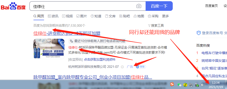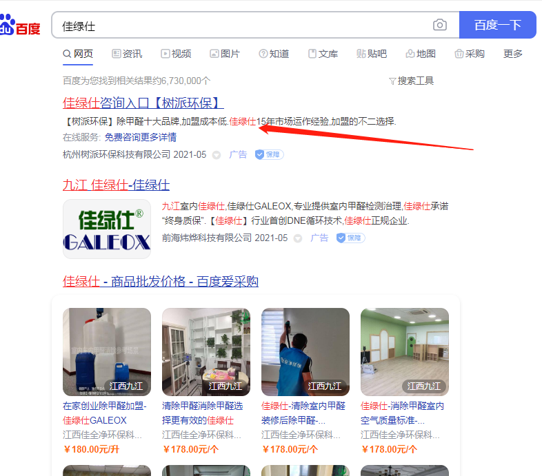 杭州樹派環保科技有限公司利用我司商標"佳綠仕"進行百度搜索關鍵詞宣傳,嚴重影響我司合法權益。